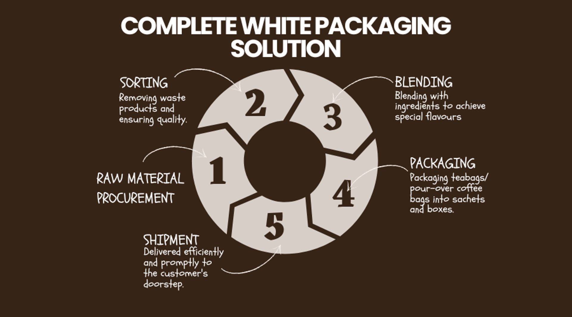 We manage everything from raw material procurement, sorting, blending, packaging, to shipping, providing a seamless and hassle-free experience from production to delivery. Our team is dedicated to understanding your unique needs and delivering products that not only meet but exceed your expectations.